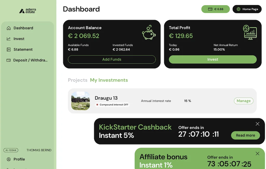 Asterra Estate ist eine 2025 gegründete lettische P2P-Plattform für Immobilienkredite, die von Edgars Putnis geführt wird und aktuell nicht reguliert ist. Es gibt noch keine veröffentlichten Zahlen zu Anlegeranzahl und finanziertem Kreditvolumen, die ersten Projekte bieten bis zu 15 % Rendite bei einer Mindestanlage von 1.000 EUR. Die Plattform arbeitet ohne Auto-Invest und Zweitmarkt, bietet aber eine gruppeninterne Rückkaufverpflichtung nach 90 Tagen.