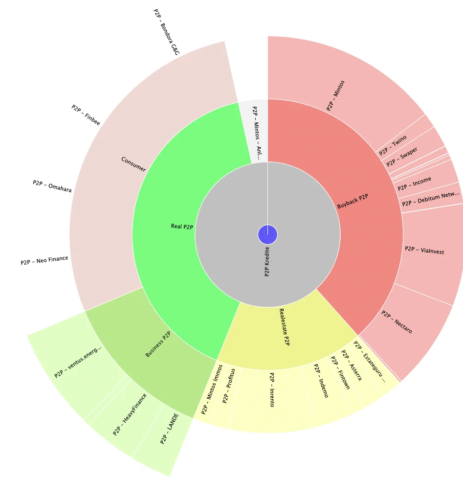 Dabei sind 40% meines Kapitals in echtem P2P investiert also in Kredite die ausfallen können und nur 38% in Buyback Kredite sowie 17% in mit Immobilien besicherte Kredite und der Rest in den Mintos Anleihen.