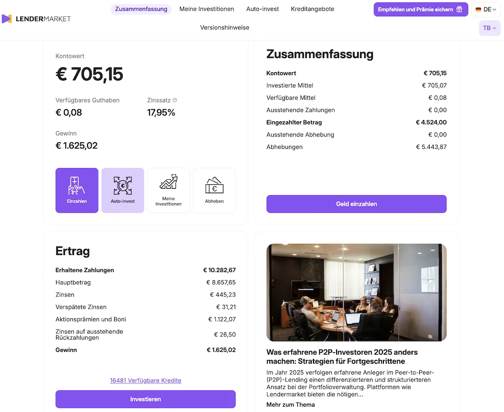 Diese Plattform hat mir 394 Euro Zinsen und Bonus bei einem Investment von 9.500 Euro eingebracht, was einer Rendite von 18,1% entspricht.