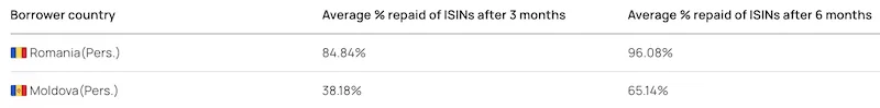Bei moldawischen Krediten sind nach 6 Monaten >50 % der Summe zurück; rumänische Kredite sind in der Zeit sogar nahezu komplett zurückgezahlt.