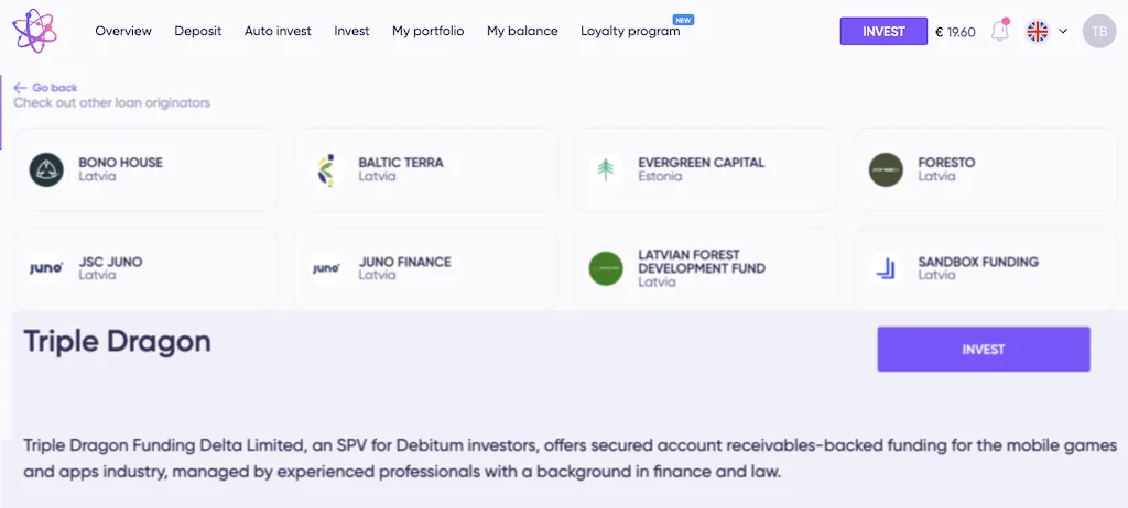 Debitum bleibt aber die bessere Wahl, wenn dir Regulierung wichtig ist oder du weniger als 1.000 Euro pro Position investieren möchtest. Debitum ist als regulierter Marktplatz beaufsichtigt – Triple Dragon Funding ist das (noch) nicht. Außerdem bietet Debitum den Zugang zu mehreren Kreditgebern gleichzeitig, was die Diversifikation erleichtert.